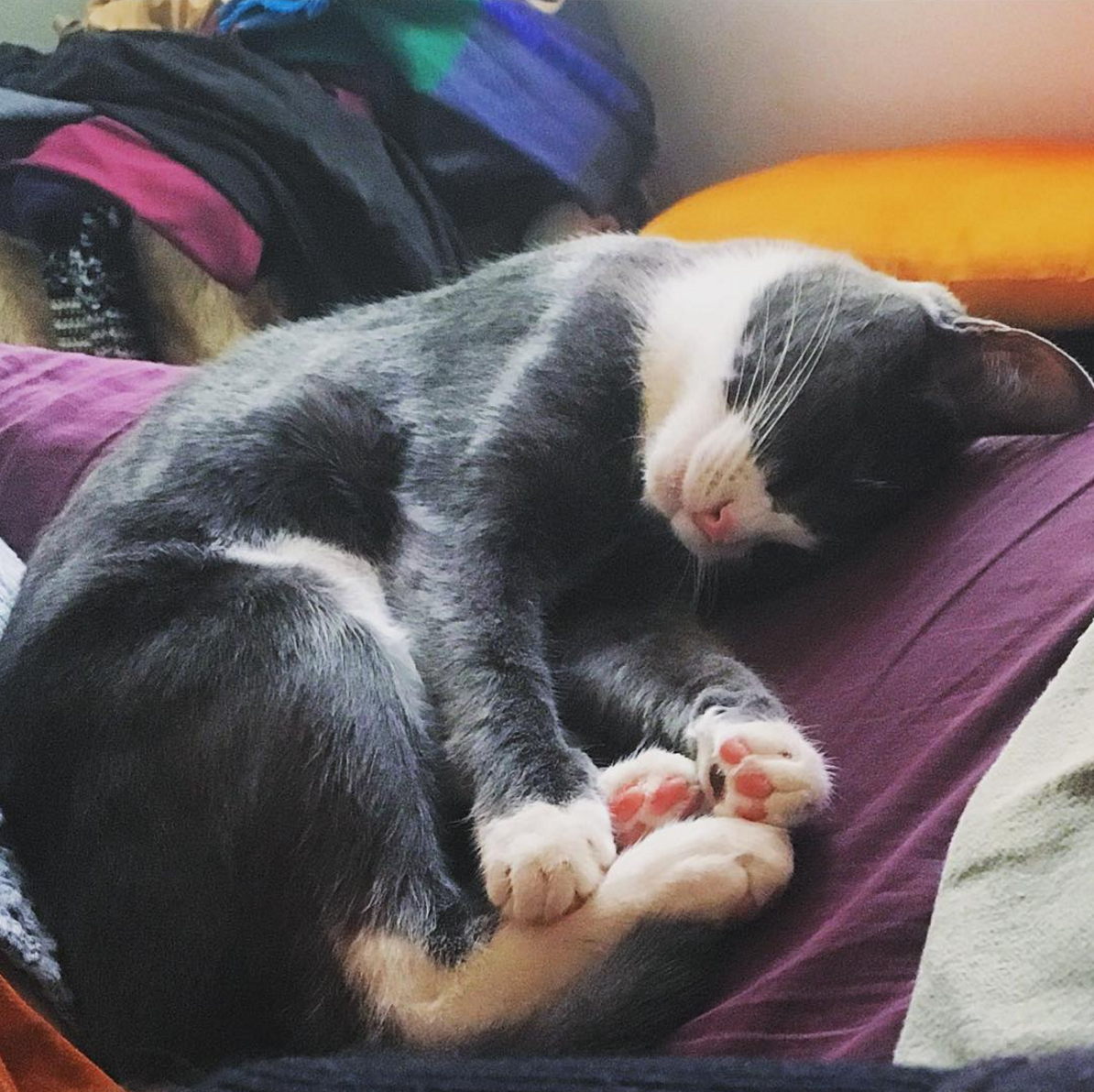 One last weird thing though. Pippa had a life before us, she was nine months old when we met her, and something in her past…taught her about alarm clocks. It’s so weird. She could be totally asleep, totally comfortable, but as soon as my alarm goes off in the morning, she gets up, stretches, and hops off the bed. I don’t know how she does it; that process takes me like ten minutes. And how does she know?? I have no idea. But she’s a perfect, wonderful morning cat. And we love her.